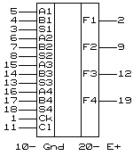 S - управление: S=L - суммирование S=H - вычитание F - выходы Cк- тактирование Cl- чистка, сбрасывает внутренний триггер суммы, сбрасывает или устанавливает внутренний триггер переноса C- состояние триггера переноса перед тактом C1- состояние триггера переноса после такта