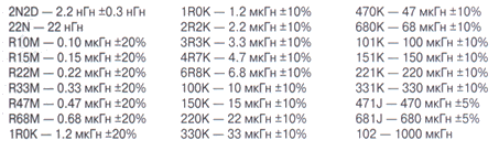 значение в микрогенри (мкГн, uН), последняя — количество нулей. Следующая