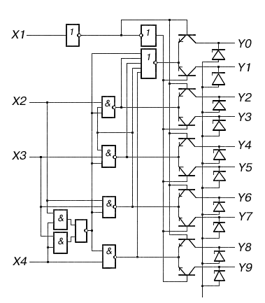 Функциональная схема ИМС К155ИД1, КМ155ИД1, КБ155ИД1-4