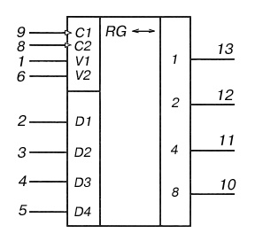 К155ИР1, КМ155ИР1 - четырехразрядный универсальный сдвиговый регистр.