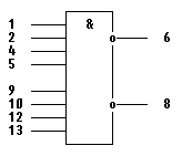 1,2,4,5,9,10,12,13 - входы X1-X8;6 - выход Y1;