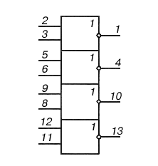 К155ЛЕ1, КМ155ЛЕ1 - четыре логических элемента 2ИЛИ-НЕ.