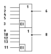 1,2,4,5,9,10,12,13 - входы;3,11 - стробирующие входы;