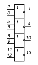 1,4,10,13 - выходы;2,3,5,6,8,9,11,12 - входы;