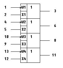 1,2,4,5,9,10,12,13 - входы;3,6,8,11 - выходы;