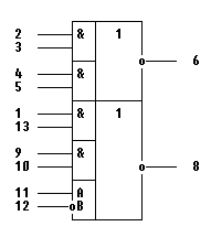 К155ЛР1, КМ155ЛР1 - 2 логических элемента 2-2И-2ИЛИ-НЕ, один расширяемый по ИЛИ.