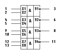 1,2,4,5,9,10,12,13 - входы;3,6,8,11 - выходы;