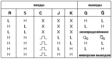 дает неопределенное состояние на выходах. Логические уровни на J и K не