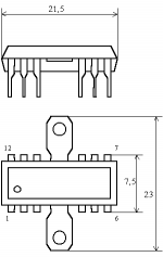 Допускается кратковременное (в течении 3 мин) увеличение напряжения питания до 18 В. Подача постоянного напряжения от внешнего источника на выводы 5, 6 и 12 микросхемы недопустима. Выходное сопротивление источника питания должно быть не более 0,05 Ом.