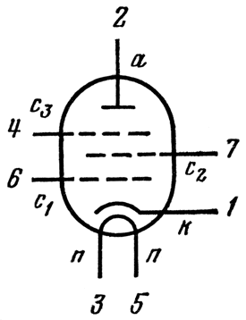 п - подогреватель катода.