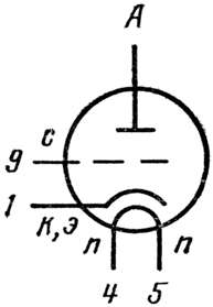 п - подогреватель катода,