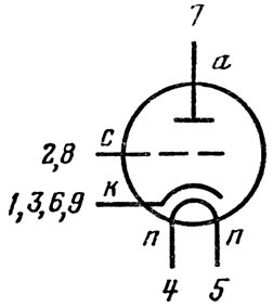 п - подогреватель катода.