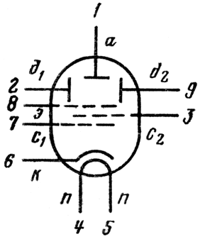 п - подогреватель катода.