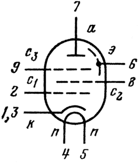 п - подогреватель катода.