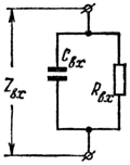 Примечание. Полное входное сопротивление электронной лампы в диапазоне частот 30 - 300 МГц можно представить в виде параллельного соединения активного сопротивления Rвх и емкости Свх (см. рисунок):