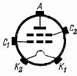 относительно 2-й сетки (при Uа=1 кВ, Uс=0,75 кВ) | 9,5 ± 2,5 | |