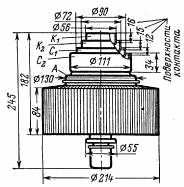 в диапазоне частот до 1000 МГц. Оформление - металлокерамическое, с кольцевыми выводами катода и сеток. Охлаждение - принудительное воздушное: анода - 2000 м3/ч, ножки - 100 м3/ч. Масса 16 кг. |