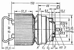 | Коэффициент усиления 1-й сетки относительно 2-й сетки (при изменении Uс2 на 50 В, Iа=1 А) | 9,5 ± 2,5 |