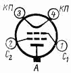 | Коэффициент усиления 1-й сетки относительно 2-й сетки (при изменении Uс2 на 200 В) | 4,5 ± 1 |