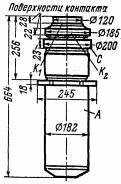 высокочастотных колебаний на частотах до 50 МГц. Оформление - металлостеклянное, с коаксиальными выводами катода и сетки. Охлаждение - принудительное: анода - водяное 70 л/мин, ножки - воздушное 500 м3/ч, баллона - воздушное 500 м3/ч, спаев стекла с металлом - воздушное 500 м3/ч. Масса 25 кг. |