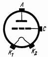 | Коэффициент усиления (при U=1 и 2 кВ, Iа=10 А) | 39 ± 7 |