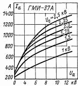 | Напряжение запирания отрицательное (при Uа=55 кВ, Iа=20 мА) | £ 4,3 кВ |