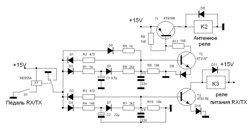 следующий пример: Вид работы – RTTY , используется компьютер и программа WF1B или подобная. В результате ошибки оператора первоначально нажата клавиша клавиатуры, а затем педаль. Если при этом не соблюдена правильная последовательность задержек включения режима “приём /передача”, то возможна следующая ситуация: Сигнал на вход оконечного усилителя подаётся раньше, чем якорь антенного реле подключит антенну к выходу усилителя, в этот промежуток времени усилитель остаётся без нагрузки, и напряжение на его выходных элементах (транзисторы, лампа) увеличивается вдвое (переменная составляющая). Возможен их пробой. Кроме того в конечный момент происходит “горячее” подключение нагрузки к выходу усилителя, вызывающее подгорание контактов реле токами ВЧ в момент их замыкания. Аналогичная аварийная ситуация возможна и при переходе с передачи на приём в том случае, если время задержки на выключение антенного реле меньше или равно аналогичному параметру предыдущего элемента коммутации ( реле ). Здесь также происходит подгорание контактов реле токами ВЧ, теперь в момент их разрыва, а далее работа усилителя без нагрузки до пропадания сигнала на его входе. На мой взгляд, особенно опасны подобные ситуации в транзисторных усилителях КВ , а больше УКВ. В ламповых усилителях просто сокращается в таких случаях время жизни ламп и реле. На практике можно привести массу примеров таких неблагоприятных ситуаций. Чтобы частично облегчить жизнь радиолюбителя- конструктора, считаю что одним из условий обеспечения долговременной и надёжной работы любого усилителя мощности и его реле является выполнение следующих двух пунктов: