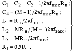 Рис.6. Многоканальная структура построения импульсного усилителя Для трехканального варианта импульсного усилителя должны выполняться условия равенства fв УВЧ нижней граничной частоте ПУ и равенства верхней граничной частоты ПУ fн УВЧ. При тех же допущениях, которые были приняты при выводе соотношений (1), условию неискаженного усиления импульсного сигнала соответствуют значения элементов ЧРЦ, рассчитываемые по формулам: