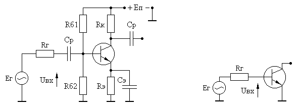 Принципиальная схема каскада приведена на рис. 2.2,а, эквивалентная схема по переменному току - на рис. 2.2,б.