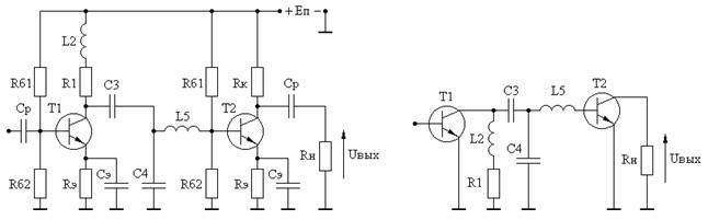 Принципиальная схема промежуточного каскада с высокочастотной индуктивной коррекцией приведена на рис. 3.2,а, эквивалентная схема по переменному току - на рис. 3.2,б.