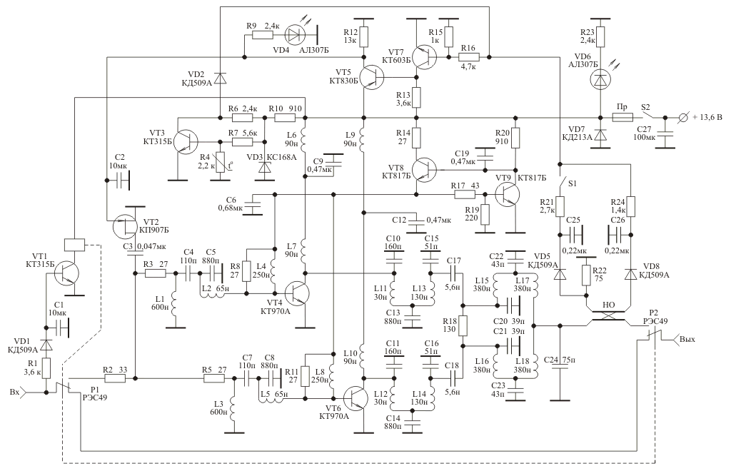 QRZ.RU > Каталог схем и документации > Схемы наших читателей > Усилители мощности > Удлинитель симплексной радиостанции диапазона 26...29 МГц