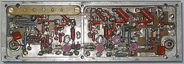 Рис. 1 Принципиальная схема сверхширокополосного усилителя (щелкните мышью для увеличения) Усилитель содержит Г-образный аттенюатор на p - i - n диодах VD1 и VD2, шесть каскадов усиления на транзисторах VT1, VT2, VT4, VT6, VT8, VT10 и датчик уровня выходного напряжения на диоде VD3. Аттенюатор изменяет уровень сигнала на входе усилительных каскадов, изменяя тем самым коэффициент усиления усилителя. При перемещении движка резистора R1 в крайнее левое положение напряжение на диоде VD1 будет равным нулю и его сопротивление окажется максимальным. В это время напряжение на диоде VD2 максимально и его сопротивление минимально. В этом случае коэффициент передачи усилителя максимален. Теперь при перемещении движка вправо коэффициент усиления будет плавно уменьшаться. В процессе регулировки усиления происходит небольшое изменение наклона АЧХ усилителя, однако, в диапазоне регулировки 34 дБ ее неравномерность не превышает ±1,5 дБ. В первом усилительном каскаде на транзисторе VT1 используется параллельная обратная связь по напряжению (резистор R2), уменьшающая входное сопротивление каскада и обеспечивающая, тем самым, увеличение глубины электронной регулировки усиления. Во втором каскаде использована корректирующая цепь первого порядка, выполненная на конденсаторе C1. Требуемый режим работы первых двух каскадов, с током покоя в рабочей точке равным 5 мА, устанавливается подбором резисторов R3 и R4. В остальных каскадах на транзисторах VT4, VT6, VT8, VT10 применена активная коллекторная термостабилизация [1]. Токи покоя указанных транзисторов выбираются равными 50 мА, 50 мА, 400 мА, 400 мА соответственно и устанавливаются подбором номиналов резисторов R5–R8. Обеспечение требуемой полосы пропускания в каскадах на транзисторах VT4, VT6 и VT8 достигается благодаря использованию реактивных межкаскадных корректирующих цепей третьего порядка [2]. Выходной каскад выполнен по схеме со сложением напряжений [3] и обеспечивает сложение в нагрузке сигнальных напряжений, отдаваемых транзисторами VT8 и VT10. Рис. 2 Чертеж печатной платы (щелкните мышью для увеличения) Печатная плата усилителя (рис. 2) состоит из двух частей размерами 65х45 мм и 82х45 мм и изготавливается из фольгированного с двух сторон стеклотекстолита толщиной 1,5-2 мм. Пунктирной линией на рис. 2 обозначены места металлизации торцов, что может быть сделано с помощью металлической фольги, которая припаивается к нижней и верхней части платы. Металлизация необходима для устранения паразитных резонансов и заземления нужных участков печатной платы. После металлизации торцов с помощью напильника выравнивается нижняя часть платы, и она устанавливается, как это видно на фотографии, в корпус. Настройка усилителя состоит из следующих этапов. Вначале производится покаскадная настройка АЧХ усилителя. Для этого с помощью резисторов R3– R8 устанавливаются токи покоя транзисторов VT1, VT2, VT4, VT6, VT8, VT10. Затем в качестве нагрузки транзистора VT1 через разделительный конденсатор подключается резистор 50 Ом. Подбором резистора R2 достигается равномерная АЧХ каскада до частоты 250 МГц. Далее к первому каскаду подключается второй и подбором ёмкости конденсатора C1 достигается выравнивание АЧХ двух первых каскадов. После подключения каскада на транзисторе VT4 подбором ёмкости конденсатора C2 достигается равномерная АЧХ трех первых каскадов в области 