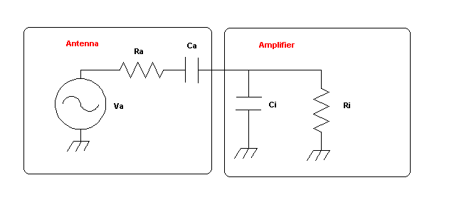 (Эквивалентная схема антенны и входа усилителя)