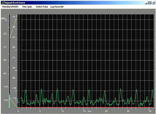 Полный спектр принимаемых сигналов показан на рис.8. Первая часть спектра(до 5 кГц) полностью заполнена индустриальными помехами (частоты от 50 до 60 Гц) и гармониками этих сигналов. В диапазоне 15-24 кГц определяется несколько сильных сигналов. Первый сигнал на частоте 15625 Гц – искусственного происхождения от горизонтальной развертки телевизионного приемника.