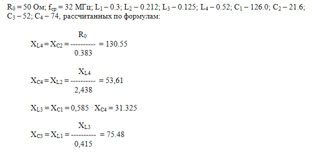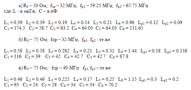 В связи с тем, что полоса пропускания телевизионных приемников более чем в 2 раза больше чем полосы частот указанных в таблицах для телевизионных центров, к выбору частоты среза необходимо подойти с особым вниманием, т.к. приближение частоты среза к максимальной частоте излучения передатчика ведет к увеличению КСВ фильтра на этих частотах, а удаление – к уменьшению подавления высокочастотных гармоник передатчика на частотах телевизионного приема. Например, в Новосибирске “1” программа работает на 2ом телевизионном канале, где: Для примера приведены расчеты для 3х вариантов:
