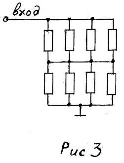 На рис. 3 схема соединения резисторов МЛТ-2. Добавление последовательных резонансных контуров Lp1, C2 и Lp2, C3 в ФНЧ секции позволяют получить глубокие провалы в амплитудно-частотной характеристике (АЧХ) фильтра на особенно нежелательных частотах телевизионного канала. Расчет параметров элементов фильтра желательно производить индивидуально для каждого случая помех данного радиолюбительского диапазона, антенны и конкретного телевизионного канала по следующим формулам: