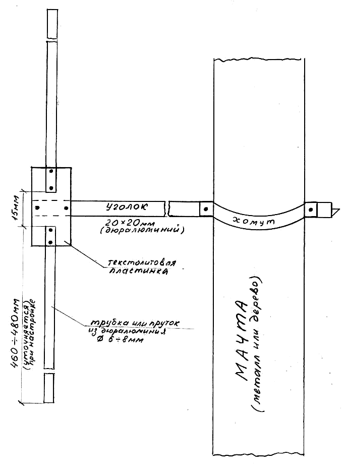 Устройство антенны показано на рис. 1. На рис.2 изображено крепление