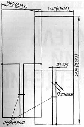 Внешний вид антенны, ее электрическая схема и устройство приведены соответственно на рис.1-3. Вертикальные стойки деревянные. С одной стороны они имеют прямоугольное сечение 50х35 мм, с другой – круглое диаметром 30 мм. Горизонтальные распорки из полых стекловолокнистых лыжных палок, внутри которых проходят проводники. Полотно выполнено из медного провода диаметром 1,5…2 мм.