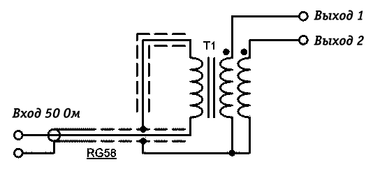 Схема широкополосного трансформатора - http://www.rf.atnn.ru/s10/antennes2-ru.html Немного о конструкции самой антенны. Здесь все зависит от материалов, которые вы можете приобрести. В моем случае я использовал две поливинилхлоридные трубы (PVC) диаметром около 50 мм и длиной, зависящей от места установки (по высоте), но, желательно не менее 1,5 м. Обмоточный провод в эмалевой изоляции (ПЭВ, ПЭЛ и др.) около 42 м. На каждую трубу по длине 1,35 м было намотано по 21 м провода. Плечи антенны расположены вертикально, на расстоянии друг от друга 0,8-1,0 м. Коробка с согласующим устройством закреплена точно по центру между плечами, хотя место ее расположения не регламентируется. Также проводился эксперимент с разнесением плеч антенны на расстояние 3,5 м (насколько позволила длина балкона), но какой-либо разницы в при работе в эфире замечено не было. Настраивается антенна очень просто, достижением минимального КСВ на диапазоне 40 м. Для этого на одном плече (второе не подключено) просто отматывается часть провода. Для моего варианта исполнения и расположения антенны получилось 20,2 м. Затем столько же провода оставляется на втором плече. После подключения второго плеча к согласующему устройству КСВ антенны немного ползет вверх, но зато антенна получается широкополосной и при применении антенного тюнера она хорошо настраивается на три диапазона 40, 30 и 20 м. Антенна в окончательном варианте была установлена вне балкона на кронштейне (см. фото) возле окна, в непосредственной близости от трансивера. В любом случае я хочу заметить, что применение таких компромиссных антенн не может заменить полноценной, полноразмерной антенны. Но для меня, по крайней мере, явилось хорошим выходом из сложившейся ситуации. И еще, пусть никого не смущает немного завышенный КСВ (около 2), с такими значениями КСВ работают и на серьезных, профессиональных антеннах. Из своего опыта работы в эфире на этой антенне могу сказать, что работает она на «хорошо», несмотря на свои размеры. Я не могу сказать, что QSO с DX станциями удаются сразу, приходиться немного попотеть, но я должен сказать что это особенно приятно, когда работаешь с Японией (30 м), Австралией (40 м) или Штатами (20 и 30 м), и рапорт дают не ниже 559!