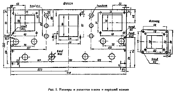 Разметка и размеры шасси и передней панели приведены на рис. 5.
