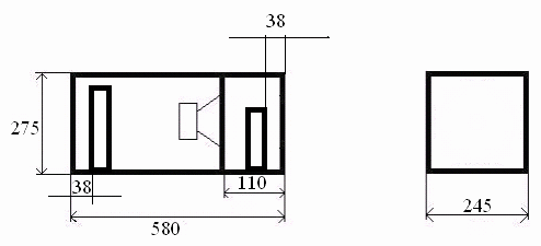 Ящик у нас имеет 33л, чего вполне оказалось достаточно для мягкого пронизывающего баса . Далее после несложных расчетов в JBL получаем верхний объем ящика 5л а нижний соответственно оставшиеся без малого 28л со вставленными в них трубами по 2-е в каждую камеру диаметром 4,5см. Динамик естественно крепится в получившейся перегородке которая изготавливается из передней стенки АС выпиливая его так чтобы динамик был по центру перегородки.
