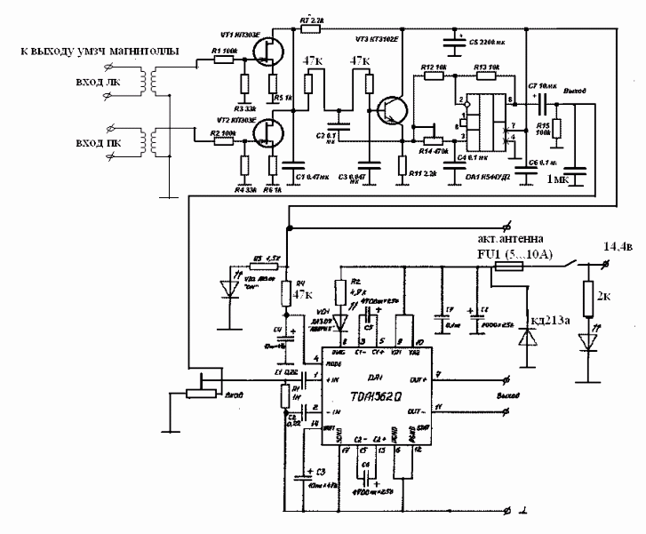 Трансформаторы малогабаритные по 350 витков коэфф. трансформации 1. Обе схемы взяты из инета я просто их соединил.