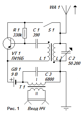 ДВ АМ радиопередатчик на одном транзисторе
