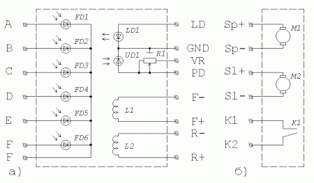 Автор - Ростислав 7 Взаимозамена лазерных головок7.1 Замена аналогичной моделью головкиРассмотрим схему ЛГ и механики. На рис. 7.1,а показана схема лазерной головки KSS210B. Рис. 7.1. Принципиальная схема ЛГ KSS210B и механики KSM210