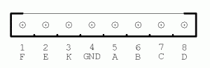 Если головки подходят по всем вышеописанным пунктам, осталось "подогнать" контакты в соединительных шлейфах. На рис. 7.3 показано гнездо для сигнального шлейфа на лазерной головке KSS210B. Контакты в гнезде и штекере нумеруются слева направо (вид со стороны установки штекера). Рис. 7.3. Гнездо для сигнального шлейфа ЛГ KSS210B