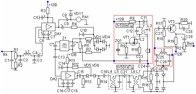 С25, С26 - 33Н, С27 - 10мкф, С28, С29 - 20мкф. ZQ1 - 500кГц. VD1…..VD10