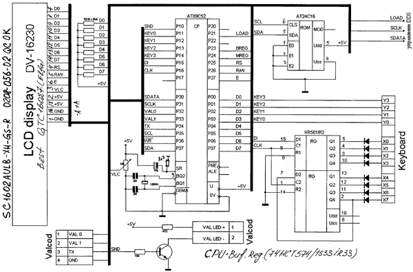 В качестве ЦПУ применяется AT89C52 c буферными регистрами для периферии. На второй плате расположен ГУН по схеме US2II – 1 вариант (10,34 – 41,74 mc ) и петля FLL с управляемым делителем на AD 9851(9850),корпус TSSOP-(RU-28), шаг 0,65.