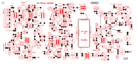 Плата А4-1М – тоже назначение, что и ранее, только выполнена на современных "мощных" СВЧ- компонентах. Смеситель на 2P907Ax2, предварит. ПЧ на 2T939A, предварительная селекция на RX – XF1, и основная для TX. Для упрощения коммутации, тракт этой платы полностью реверсивный , как на RX, так и на TX. Коммутация каскадов и переключателей на диодах KD409A. Все тонкости – на схеме и на печатке.Резисторы на схеме, помеченные как 2 ваттные, типа С5-42, они меньше, чем МЛТ2.