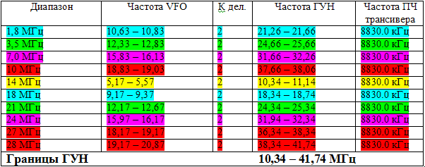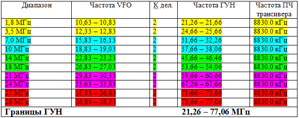 Расклад частот ГУН вариант 1, для стандартной раскладки частот ГПД: