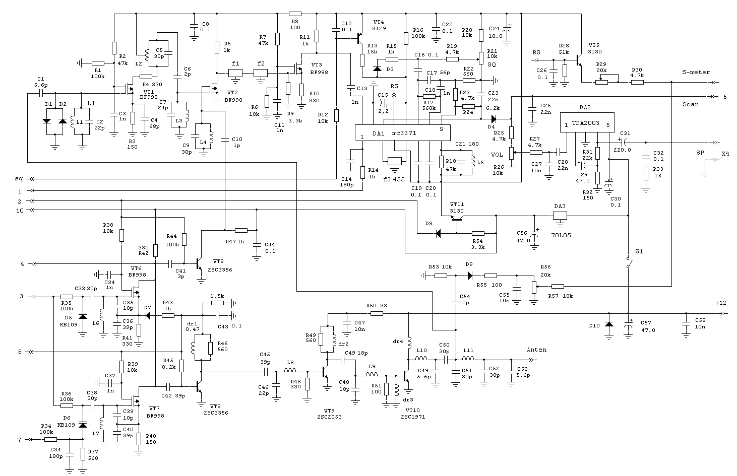 каскад для S-метра. VT12 - ключ коммутирующий питание приемника. Цепи